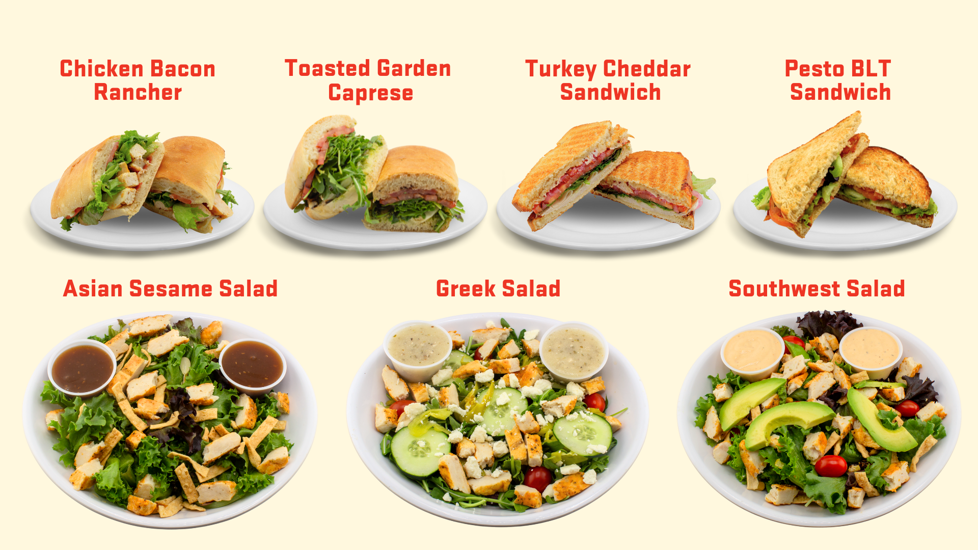 Fuel up your day with fresh flavors from Fuel America’s menu — featuring crisp, hearty salads and delicious handcrafted sandwiches. Choose from our Asian Sesame, Greek, or Southwest Salad for a light and flavorful bite, or go bold with sandwiches like the Pesto BLT, Chicken Bacon Rancher, Turkey Cheddar, or Toasted Garden Caprese. Every option is made fresh to order and packed with the fuel you need to keep moving.
